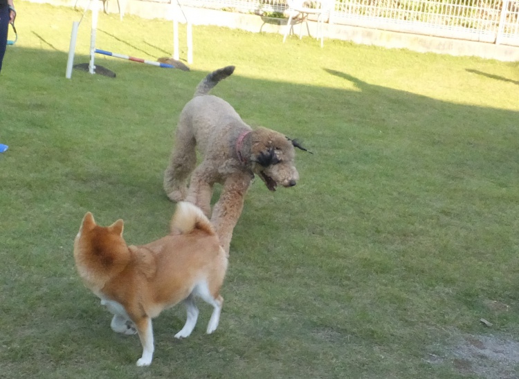 柴犬の愛ちゃんはスダチちゃんと仲よく遊びました^^