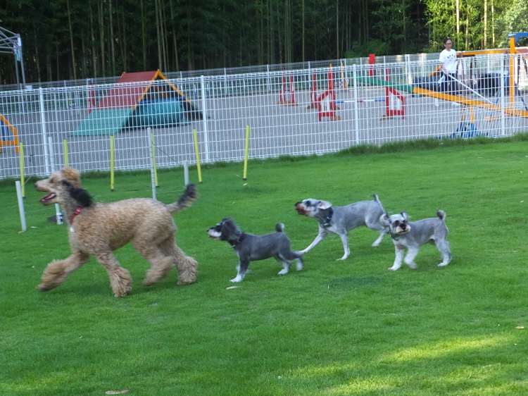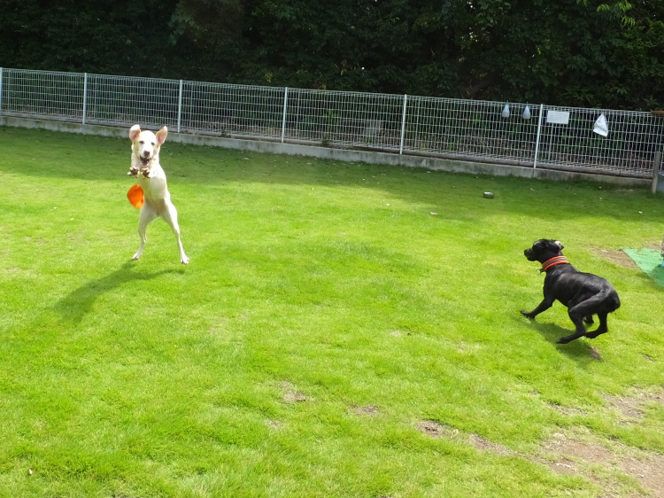 アジリティーの練習の後、芝のフィールドで遊びました^^