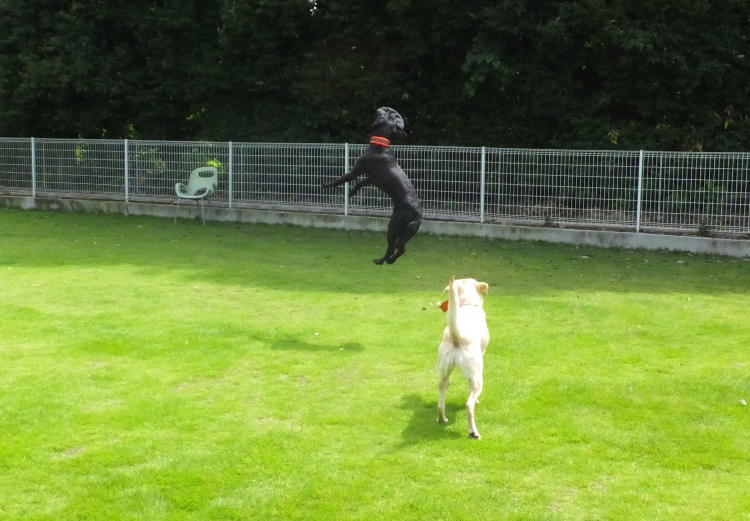 ドッグラン開店してすぐの涼しいうちに来てくれたのはラブラドールレドリバーのアジリティー犬、なっちゃんハルちゃん姉妹^^