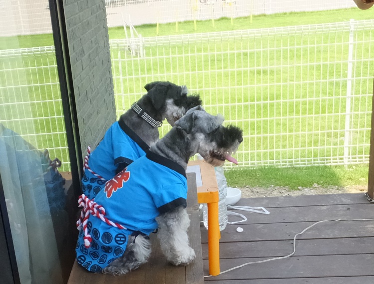 クゥちゃん、メイちゃんリンちゃんが持ってきてくれた「お祭りの法被」を試着してみました^^