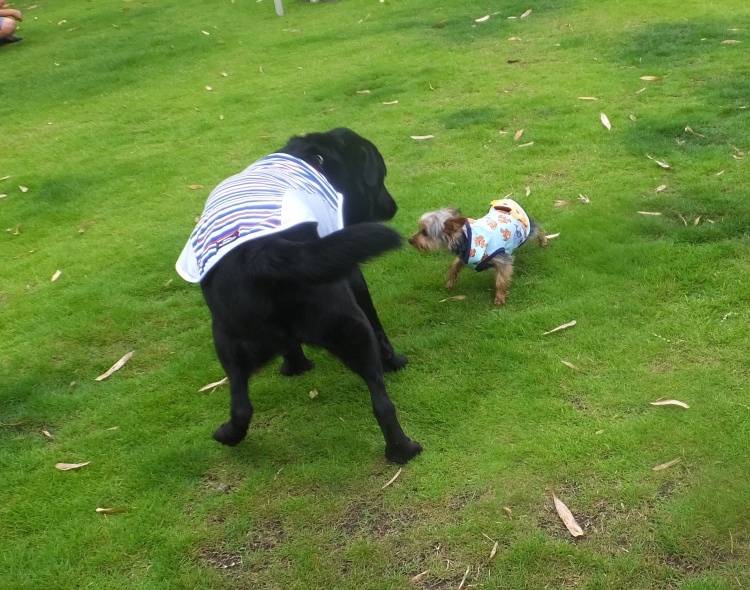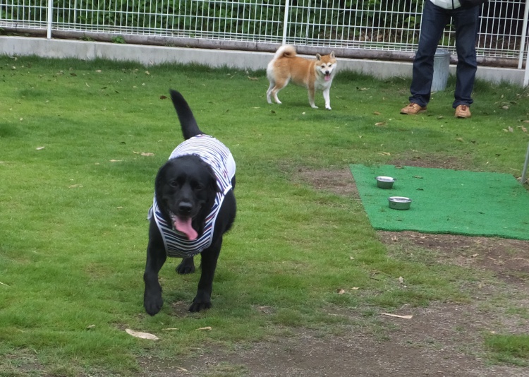 柴犬の愛ちゃん、ラブラドールレドリバーのベルちゃんと仲よく遊べました^^