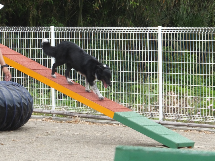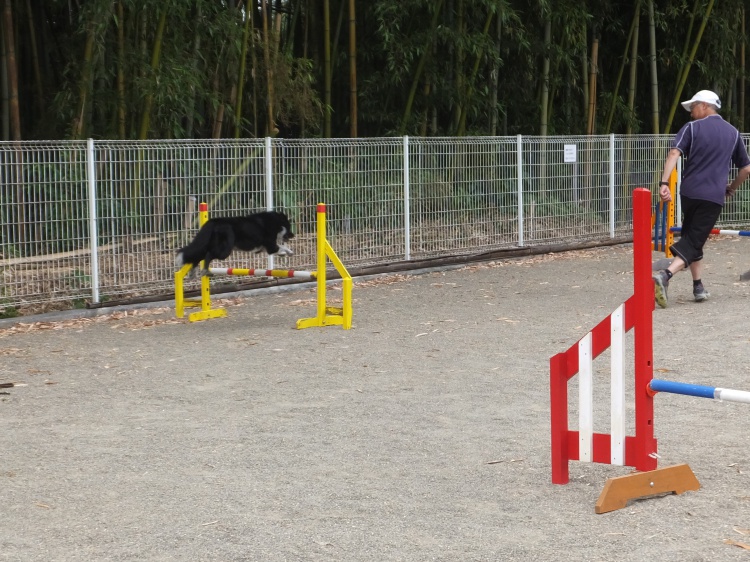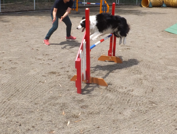 ボーダーコリーのスパーキー君、ママとアジリティーの練習です^^
