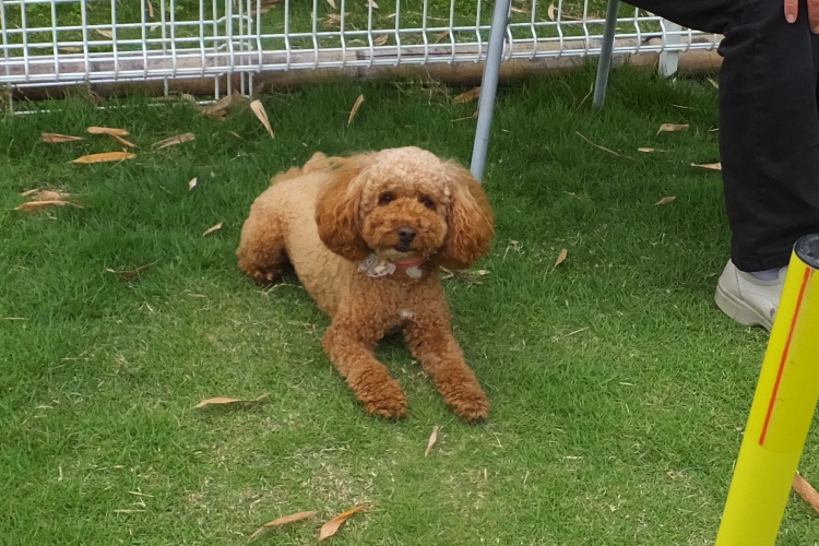 トイプードルのアンジュちゃん、芝のフィールドでまったり^^ジャンプもしちゃいました♪
