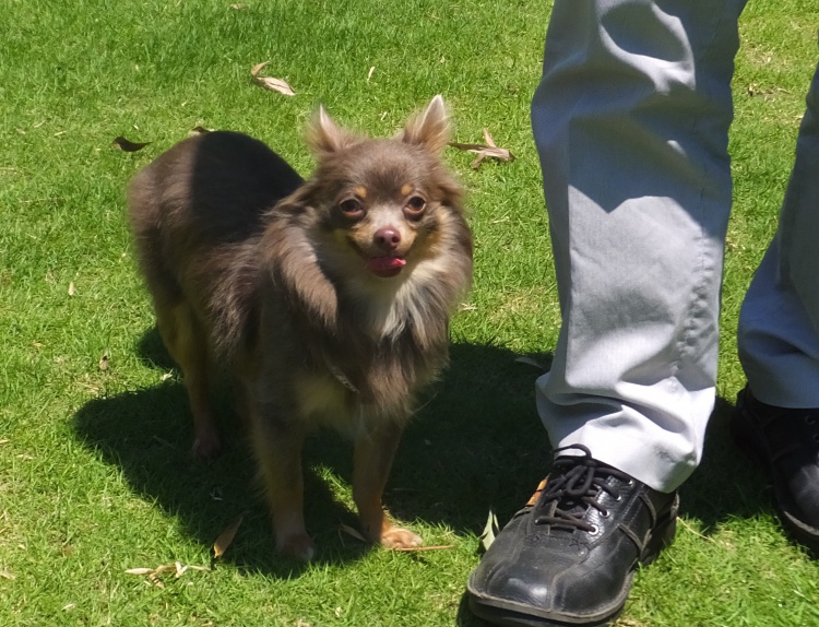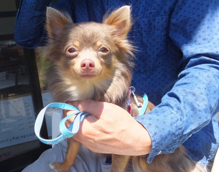 チワワのクゥちゃんはパパとしつけのお勉強でしたが・・・暑い(@@;