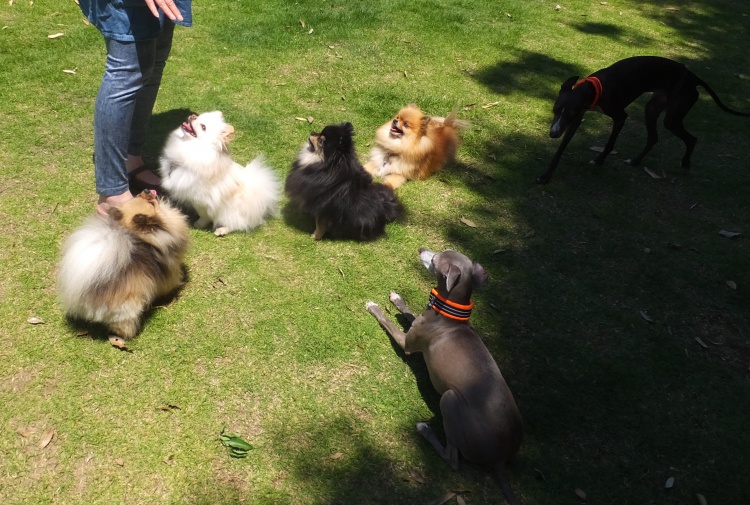 ポメラニアンのメリーさん、マリンちゃん、マリヤちゃん、ミライちゃん。