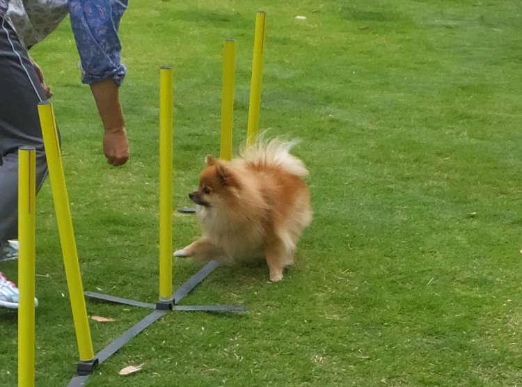 ポメラニアンのモコちゃん、スラロームも楽々^^