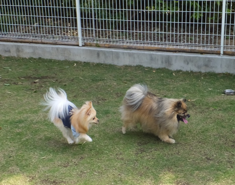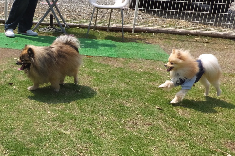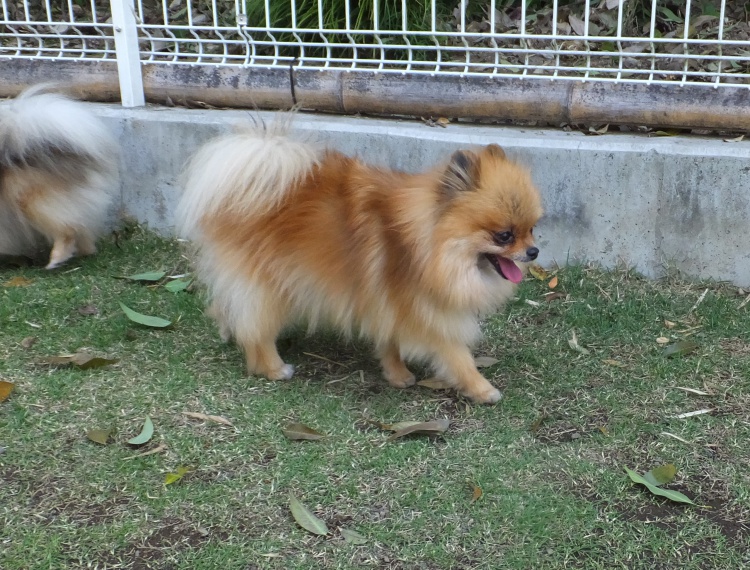 ポメラニアンMIXのポンキチ君^^ポメラニアンのハナコちゃんと仲良しになりました^^