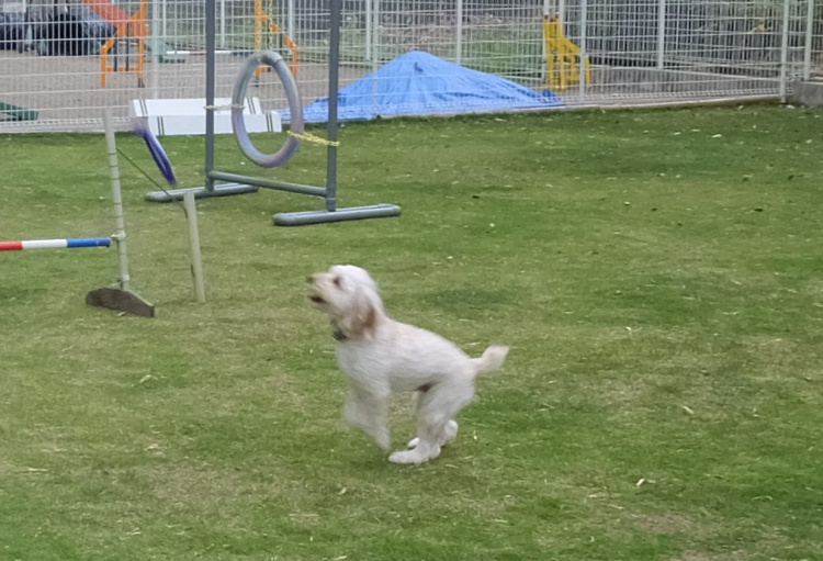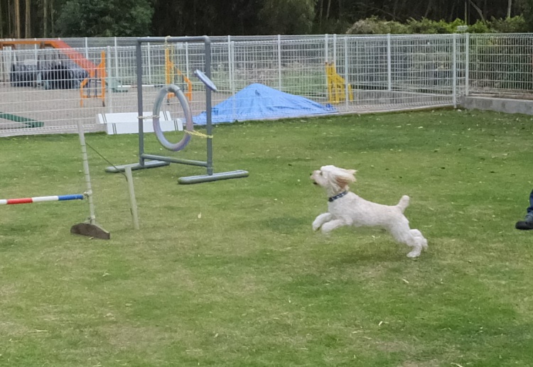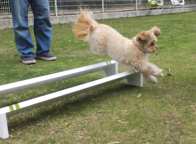 初めましてのトイプードルのマロンちゃんはハードルジャンプ初めてなのに上手です(@@)
