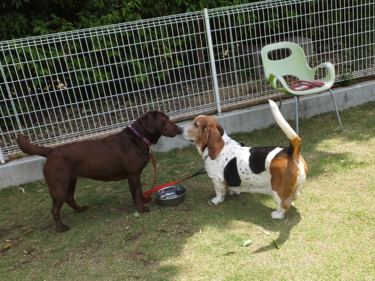バゼットハウンドのマロンちゃんが来て・・・なんと!女の子同士とっても仲良しになりました^^
