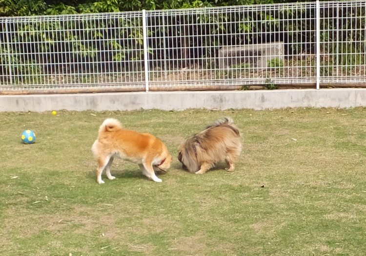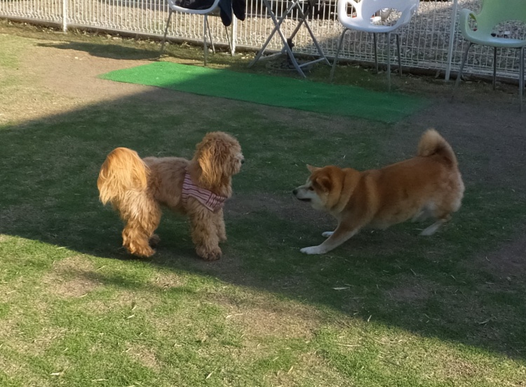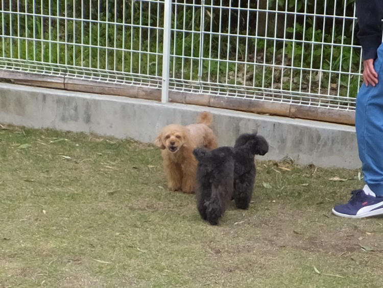 柴犬の琥珀ちゃんと大和君^^トイプードルのリオンちゃん兄弟