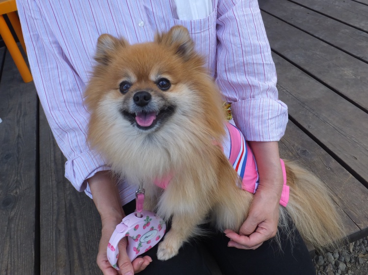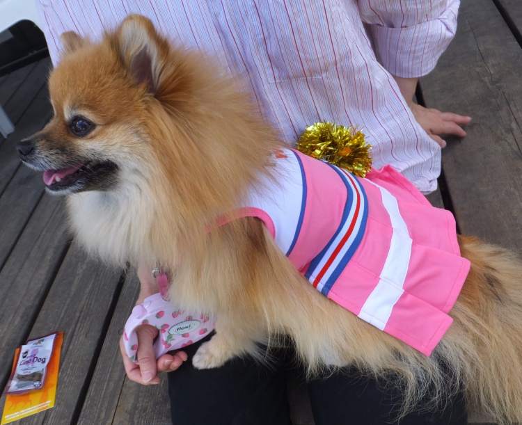 ポメラニアンのモコちゃんは今日はチアガールで登場です^^