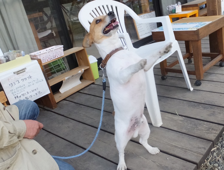 閉店後、ジャックラッセルテリアのチャッピーちゃんが散歩の途中で寄ってくれました。