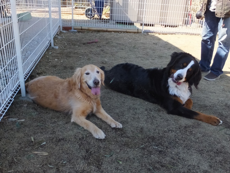 ノンちゃんが帰ってすぐに来てくれたのが、バーニーズのヒナタちゃんとゴールデンレドリバーのノノコちゃん^^