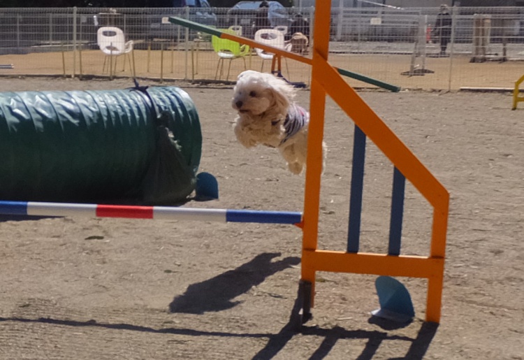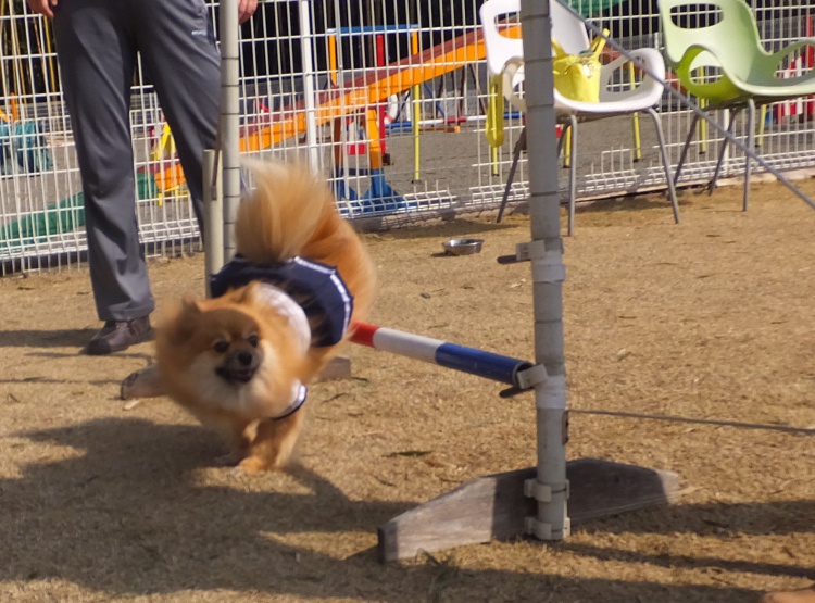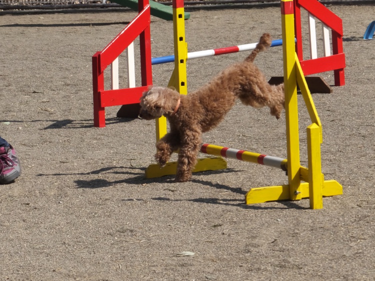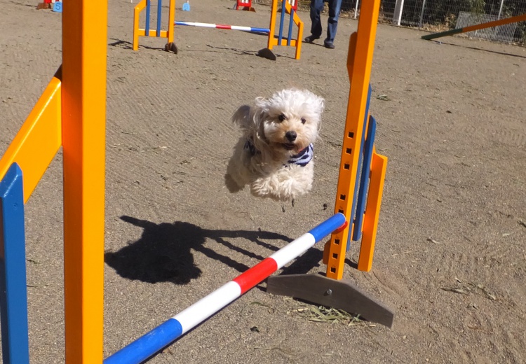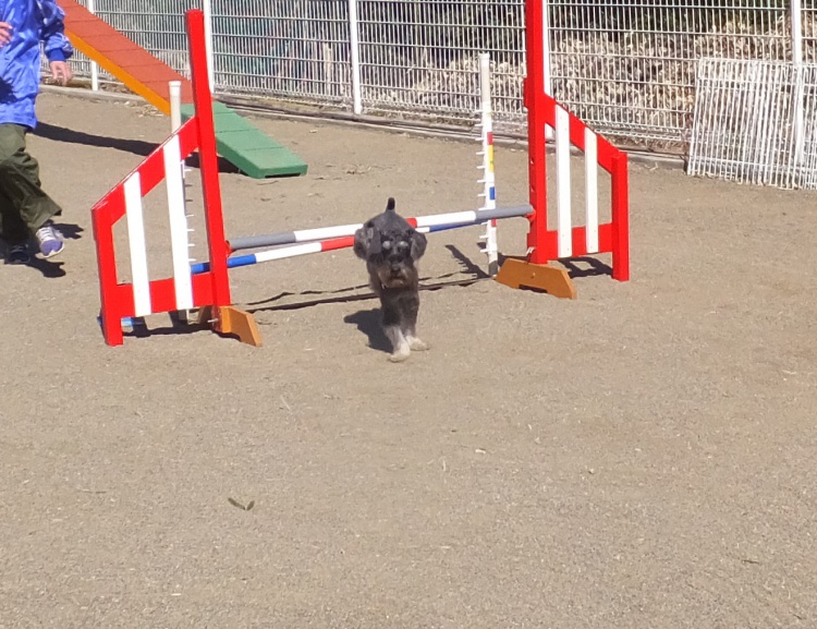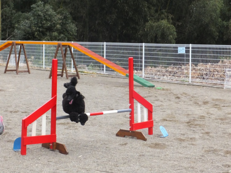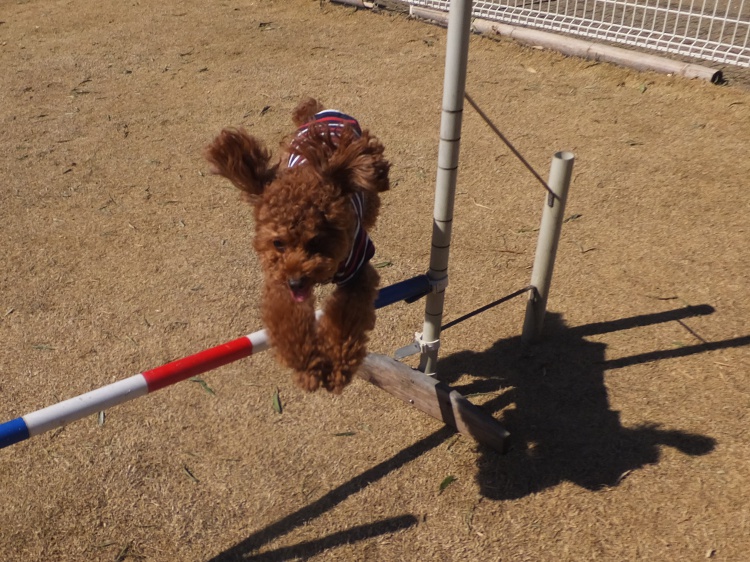 ミニチュアプードルのハニーちゃんはアジリティーの練習です^^