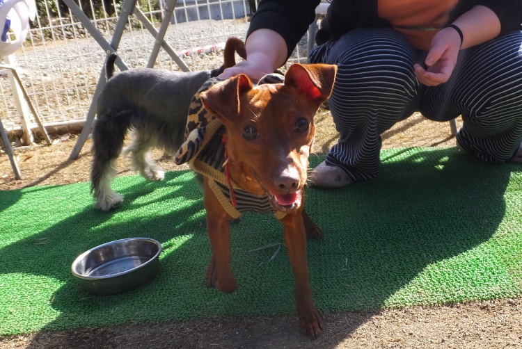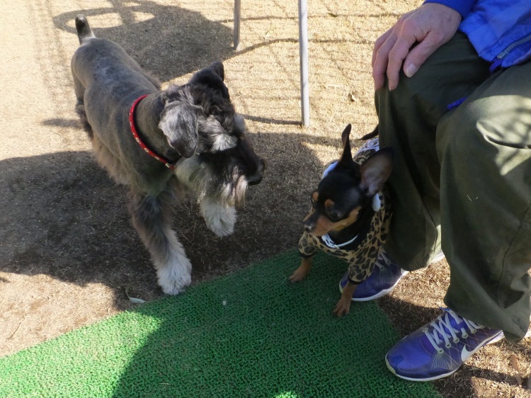 MIXのシオンちゃんと初めましてのミニチュアピンシャーのノエルちゃんルイくん^^