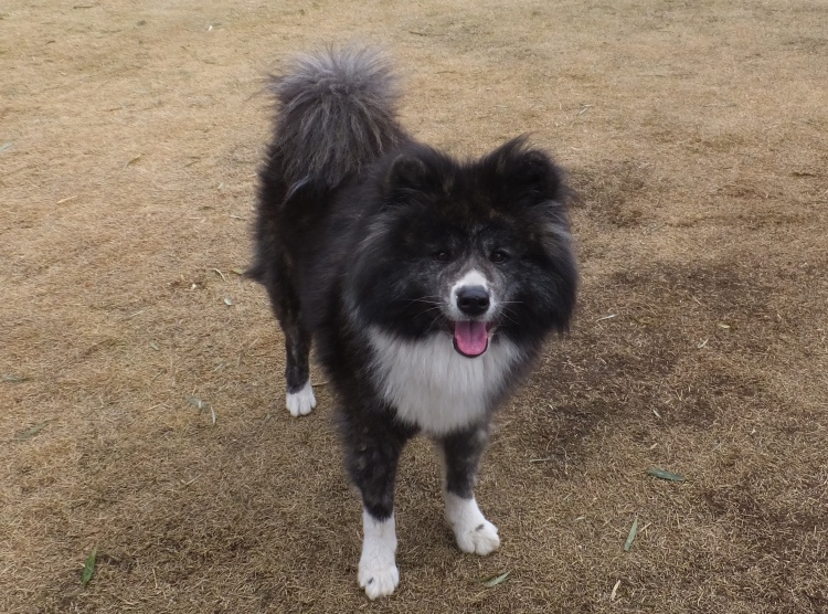 ポメMIXのポンキチ君、暑くて木陰で遊んでいました^^