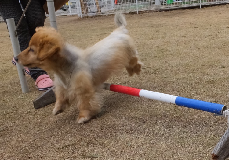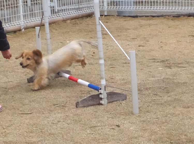 Mダックスのライムちゃん、ハードルジャンプに挑戦^^上手にできました♪