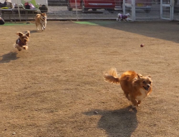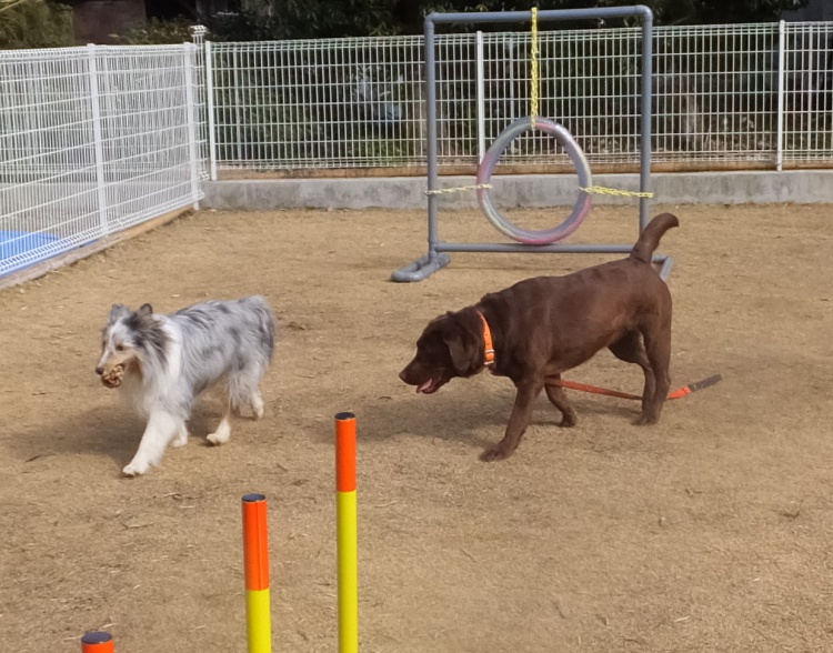 モグちゃんがアジリティーのお勉強の間、サボちゃんは芝のフィールドで元気に遊びました^^