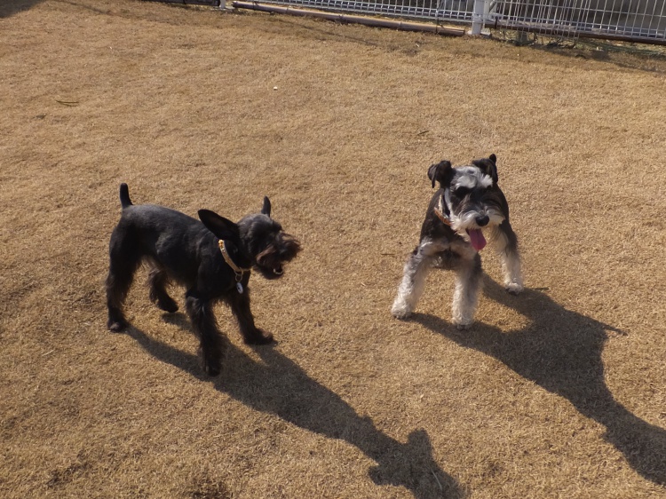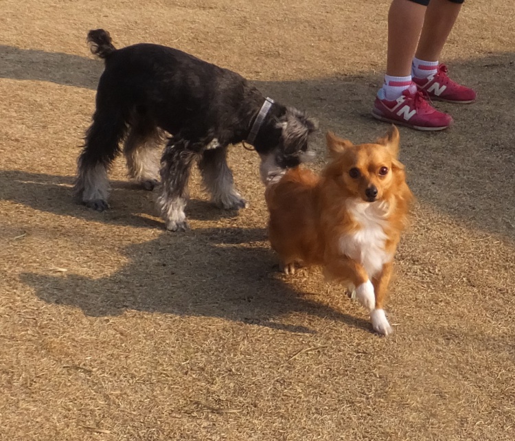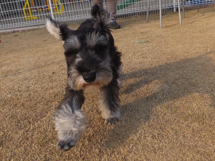 Mシュナのケルン君^^一緒に来たミトンちゃんはパパと芝生のフィールドで遊びました^^