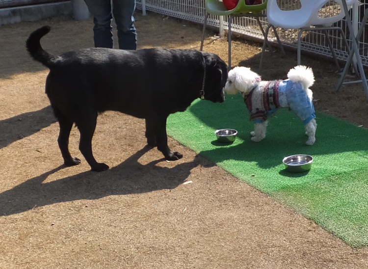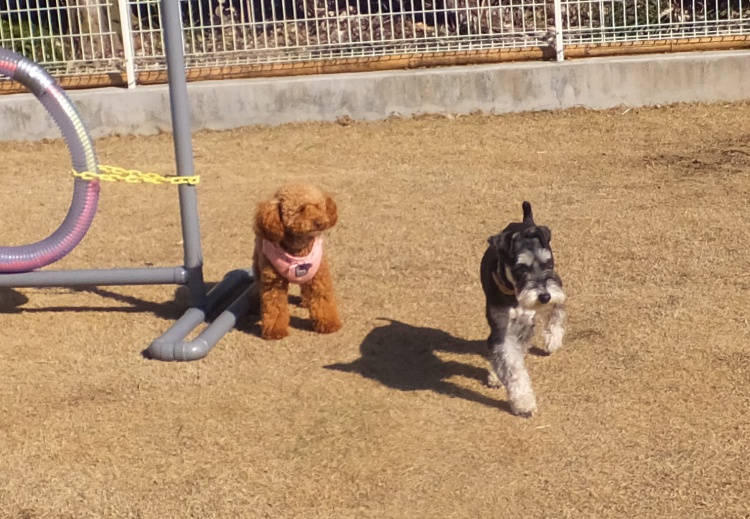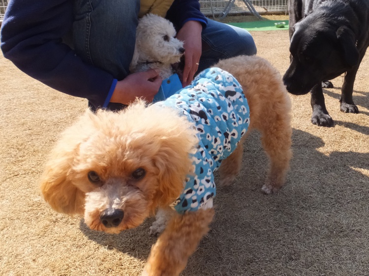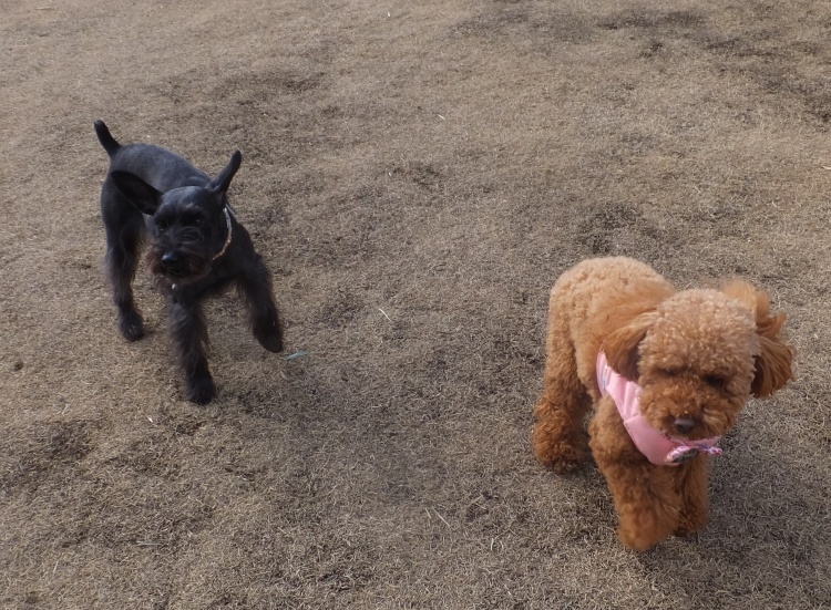 トイプードルのアンジュちゃんチョットビビリながらも仲よくなれました^^