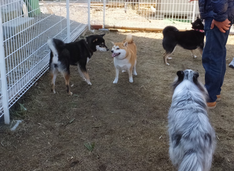 柴犬の愛ちゃんも来て、フィールドは柴犬4頭になりました。