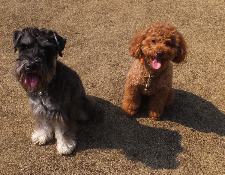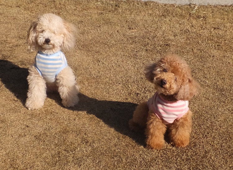トイプードルのムサシ君とMIXのヒュウガ君兄弟^^