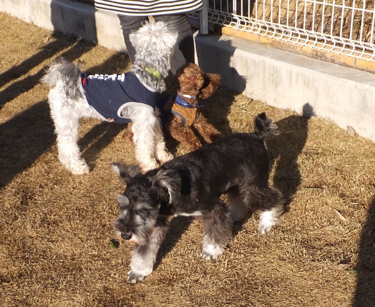 トイプードルのハルト君、カイト君兄弟も来て、チャチャちゃんロンちゃんと仲良しになりました^^