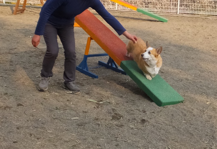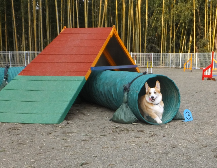 コーギーのケンシロー君はアジリティーで遊びました^^