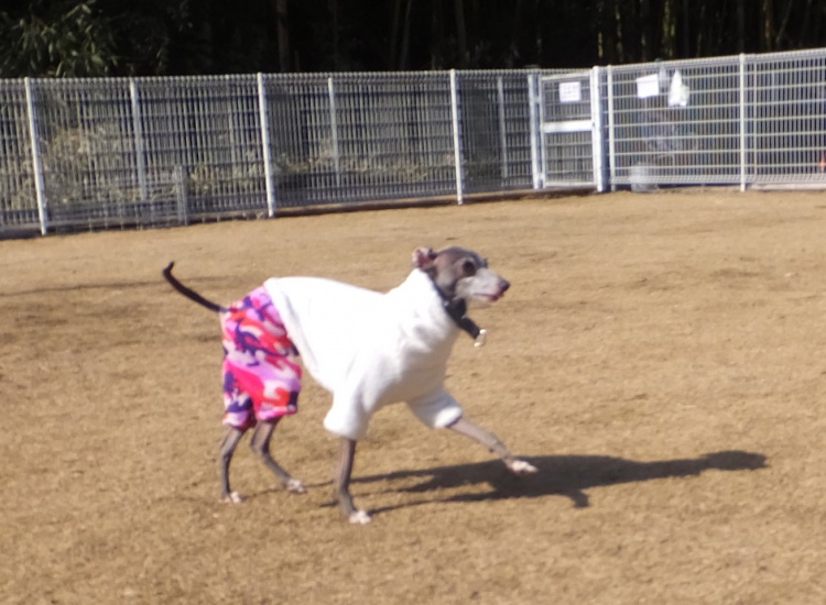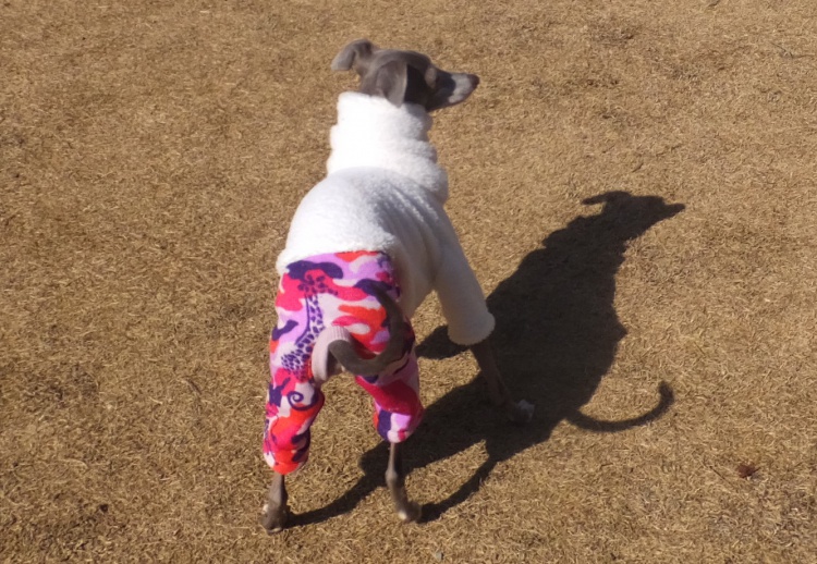 イタリアングレイハウンドのマーブルちゃんとモネちゃん、ママ手作りのウエアーはいつも素敵です^^