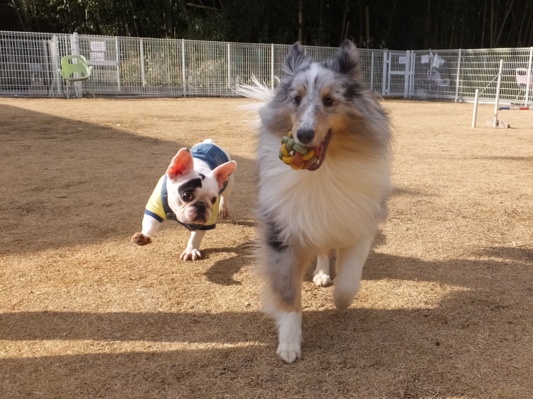 午後に来てくれたのはフレンチブルドッグのチェルシーちゃんとシェルティーのアイル君^^