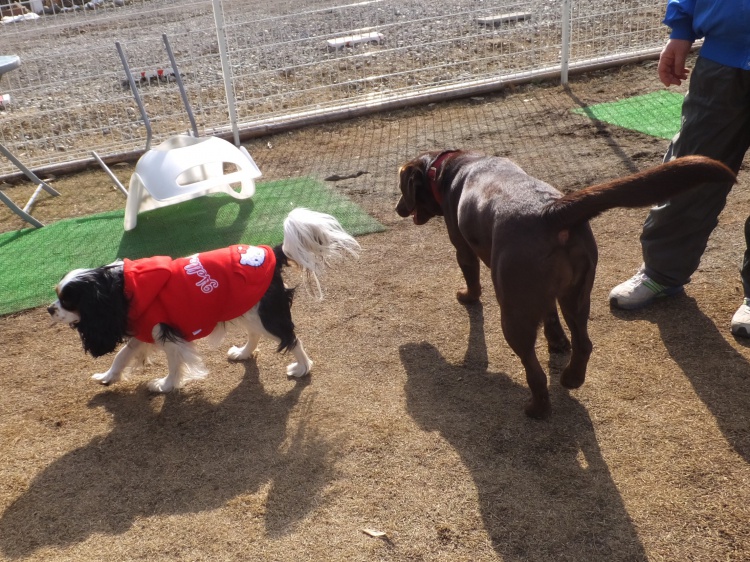 キャバリヤのあられちゃんはお友達ワンコにはあまり興味がありません^^
