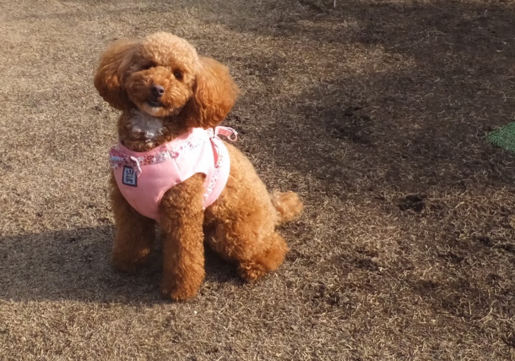 トイプードルのアンジュちゃんはママに抱っこが大好きですが・・・ドッグランでは抱っこは我慢です(__)