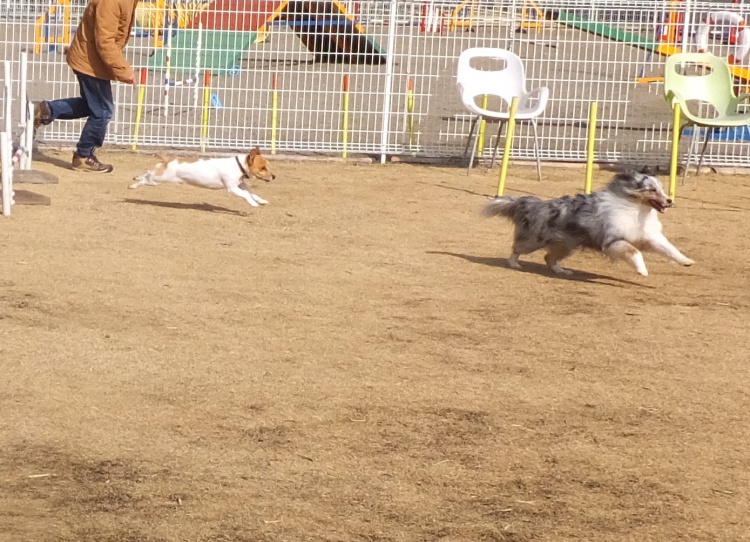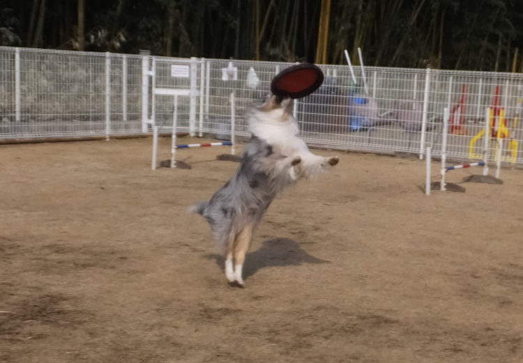 シェルティーのアイル君はアジリティーの練習です。アイル君ディスクも得意です^^
