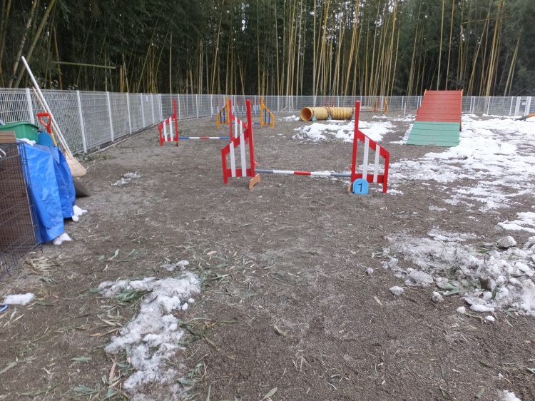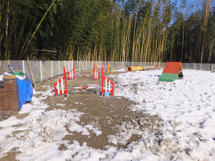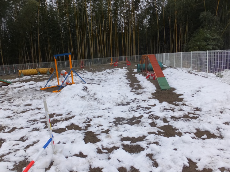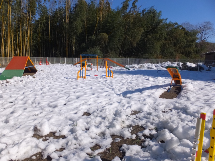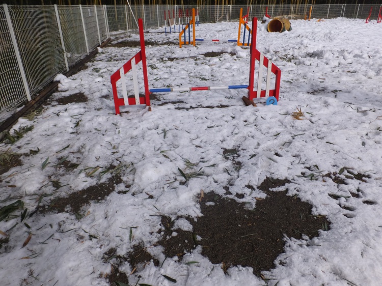 上級クラスの障害物はまだ雪かきが済んでいませんので利用できません。