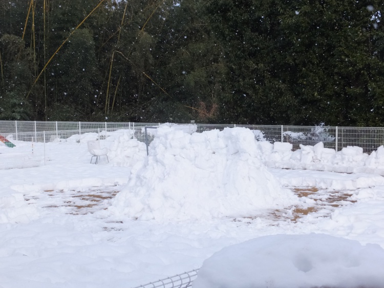 芝のフィールドの真ん中に雪を積んでいます(@@?