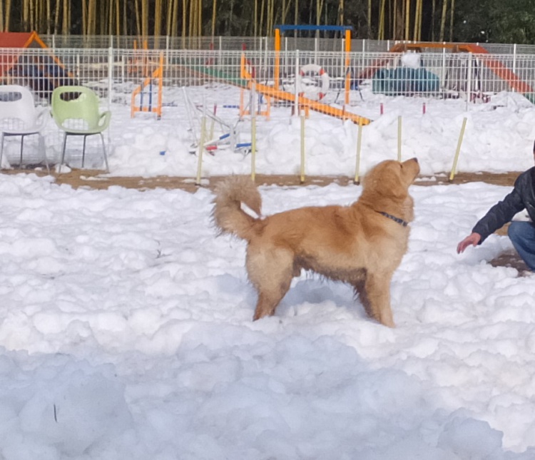 初めましてのゴールデンレドリバーのラブちゃん、パパとママとお姉さんとお兄さんと来てくれました。雪大好きって・・・ガンガン走り回っていました^^