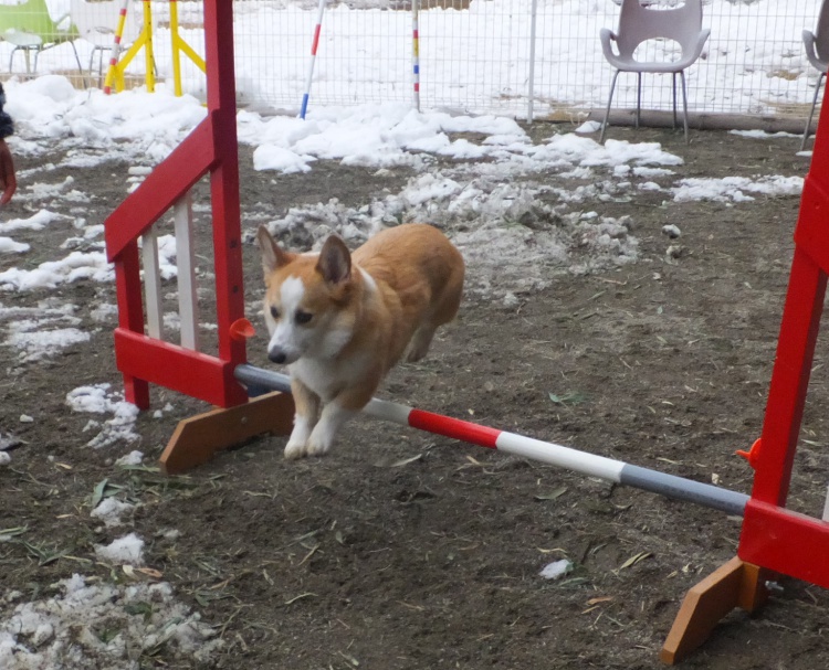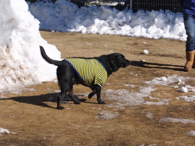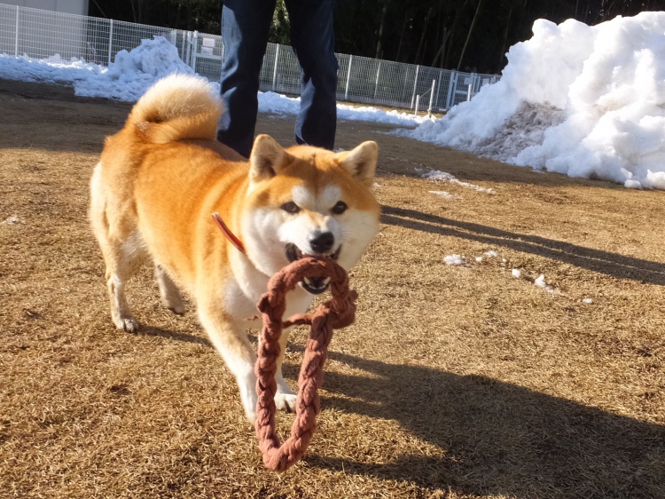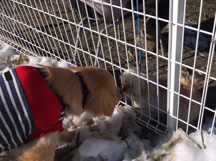 コーギーのケンシロー君が来てくれた頃には芝のフィールドは雪が解けてきてベタベタ(><)