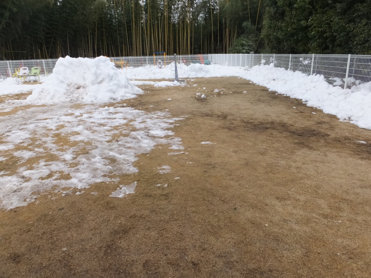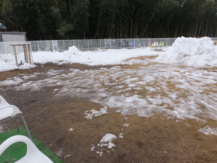 本日23日(土)は10時より営業しますが、芝のフィールドは雪がたくさん残っています。