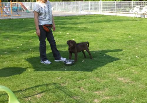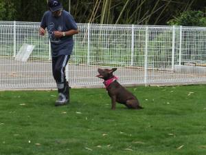 サラちゃんメーテルパパと服従練習「座れ待て」が上手に出来ます。