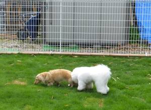今日は芝生で・・・ワンコさん達に慣れる練習です。