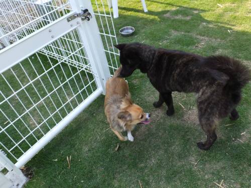 マルちゃんは男の子なので我が家の女の子マーヤを芝のランに入れてみました。