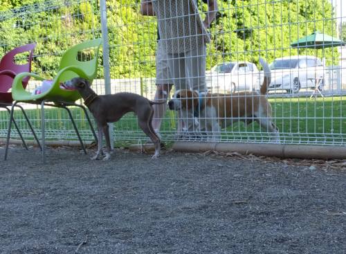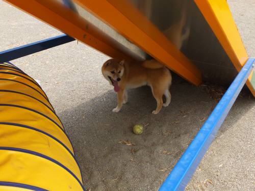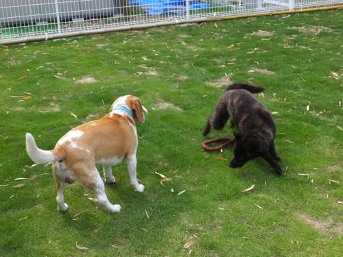 ドッグランに慣れてきたムサシ君みんなと仲良くできます。