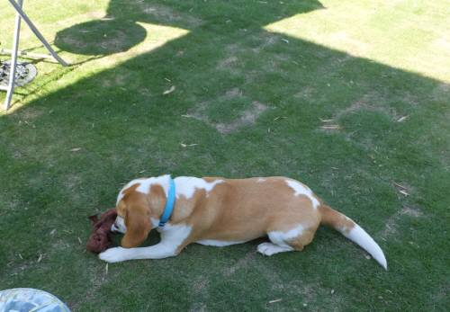キュッキュ鳴るおもちゃが気に入って、日陰に持っていって・・・・ボクのです!