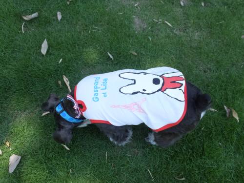 B&Sのムク君は白いTシャツを着てドッグランで遊びました。