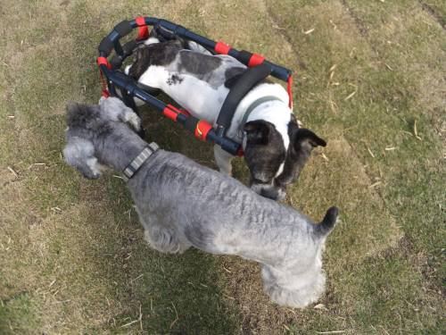 ももちゃんは手術をして間もないので、車いすで遊んでいきました。