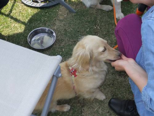すこしワンワン吠えてしまったけど、ママ以外の人からおやつをもらって・・・ちょっと慣れたかな?