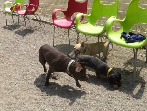 ダックスのゆずちゃん、Fブルドッグのサキちゃん、Aピットブルのサラちゃん姉妹が来てくれました。三姉妹だとサラちゃん元気元気!!