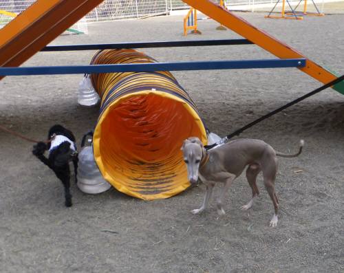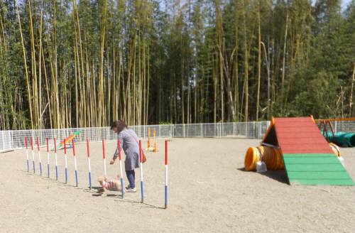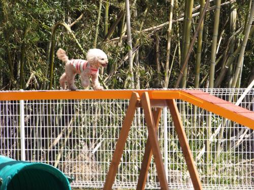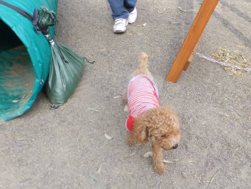 アジリティー障害を使って楽しそうにママと遊んでいました。