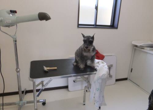 めいちゃんはトリミングテーブルのマナーがしっかり躾られているので、