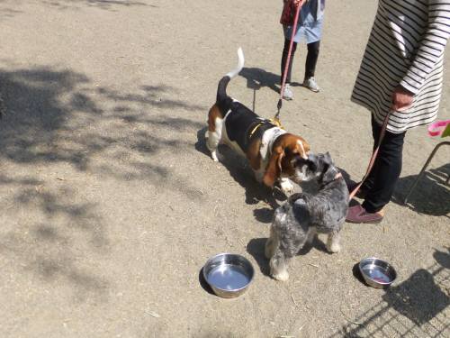 ミニチュアダックスのハナちゃんはシャイでなかなかワンコ達の輪に入っていけません。でも、前回来てくれたときより距離は近づいています。もう少しですね^^